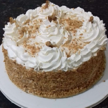 Massa branca 03 camadas, 02 camadas de Recheio sendo 01 de Mousse branco e 1 Brigadeiro branco cremoso com Ninho, saborizado com Nozes picadas, cobertura chantimousse branco decorado com Nozes! ????Peso mínimo: 1,5 kg ????Valor por kilo: R$90,00 ????Não fazemos alterações de sabores, formato e ou decoração! Importante! Esse é um produto de encomenda e nós precisamos de um tempo maior para prepará-lo. Mas não se preocupe, basta verificar nossa disponibilidade que iremos te atender ????